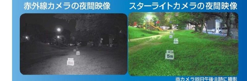 赤外線照射(IR)をなくすことで、夜間の暗視イメージが変わります。 夜間の暗視識別力が、大幅アップ!カラーでの撮影が可能となりました。 ※0.00001照度まで撮ることができます。